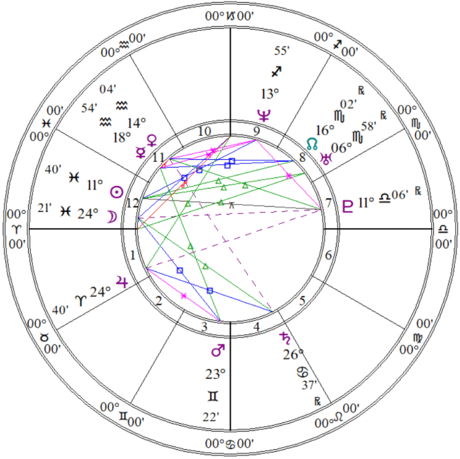 同じシングルマザー同士、何か星の配置に共通するものがあるのかと気になりまして、彼女のホロスコープを見てみました。